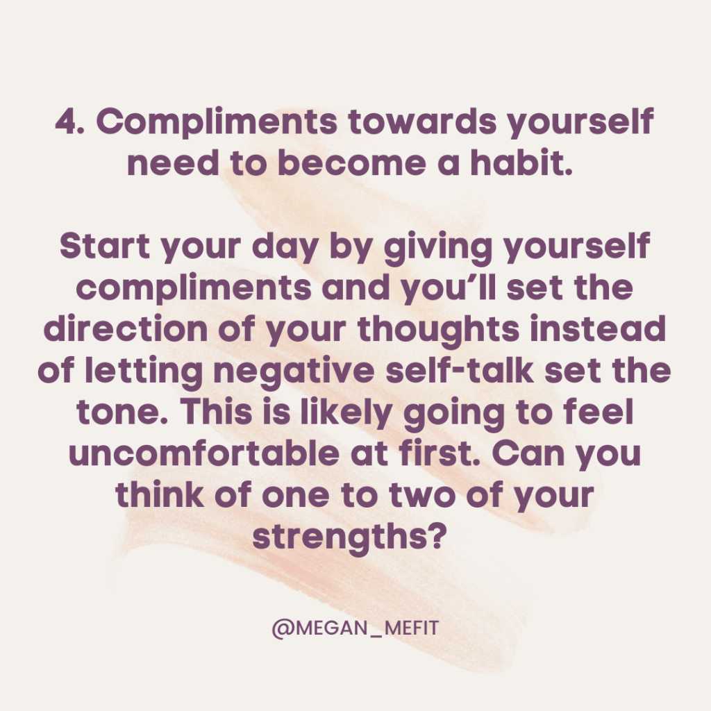 2️⃣Focus on what’s being added in and improved. Adding in more protein, more fruits and veggies, more movement etc. (not what’s being taken away or restrained.)